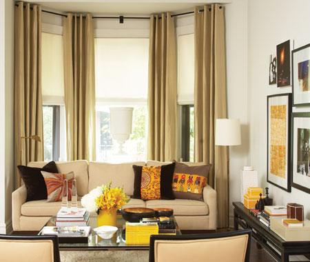 Curtains can be a defining aspect of a living room. Large windows may benefit from the long, graceful lines of a traditional drapery or a more contemporary sheer fabric. A wide of variety of curtain choices are available to dress your living room window. Take a good look at the layout and color scheme of your living room and start searching.